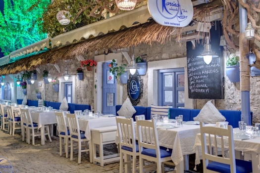 Deniz mahsullerinden oluşan Karina mutfağında, çeşitli ege mezelerini, günlük taze deniz balıkları ve nefis kalamar, karides, ahtapot, istiridye, ıstakoz gibi deniz ürünlerini farklı tatlar da yiyebilirsiniz.